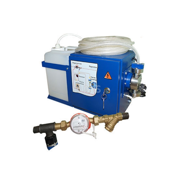Устройство водоподготовки «Комплексон-6» (Н-1,5) состоит из счетчика с дозировочным устройством и адаптером, блока автоматики, насоса-дозатора и расходной емкости. Процесс водоподготовки начинается с резервуара, из которого ингибрирующий раствор поступает в воду. За счет равномерного дозирования (3-10 мг/л) раствор обеспечивает качественную очистку воды и защиту котельного агрегата от образования накипи и коррозии.